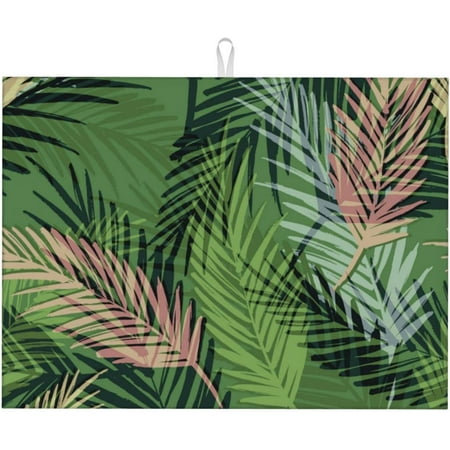 Tropical Palm Leaves Dish Drying Mat For Kitchen Counter Large Absorbent Dish Drainer Super Absorbent Microfiber Dish Drying Pad 18x24 Inch