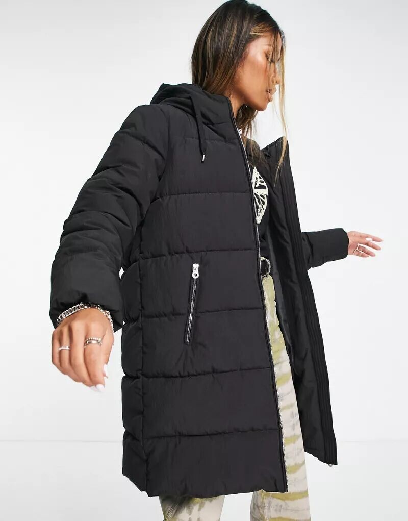 Удлиненное пальто с капюшоном Only черного цвета, Черный, Удлиненное пальто с капюшоном Only черного цвета