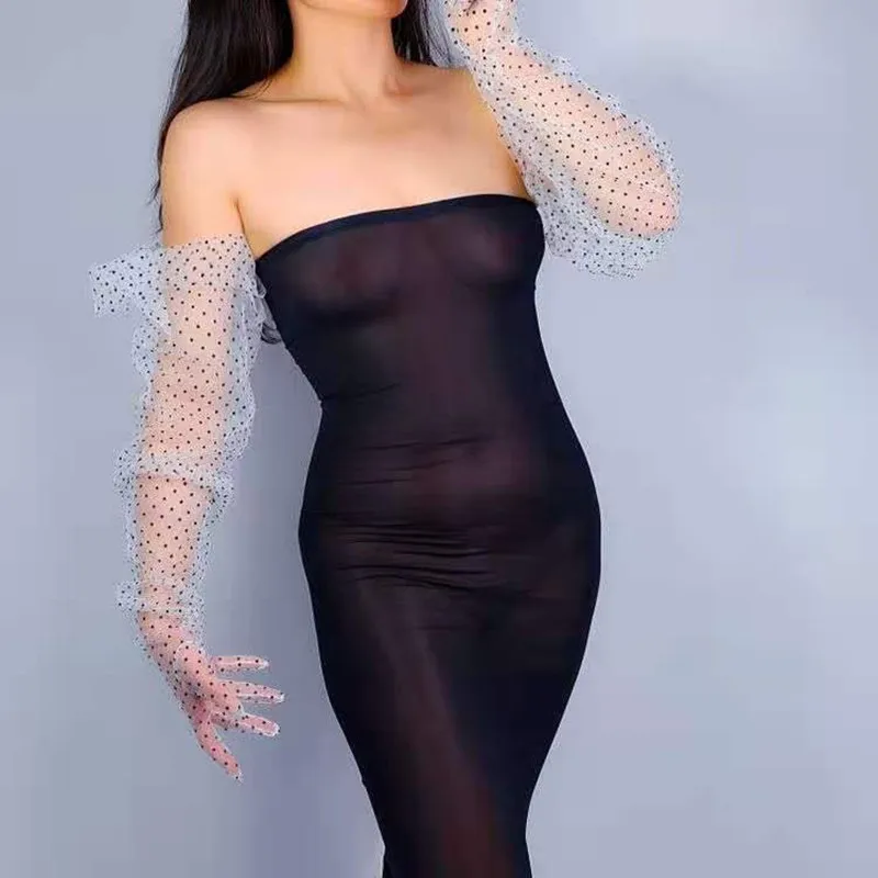 Удлиненные тонкие свободные летние черные кружевные прозрачные сетчатые свадебные платья в горошек 85 см Одежда для невесты перчатки