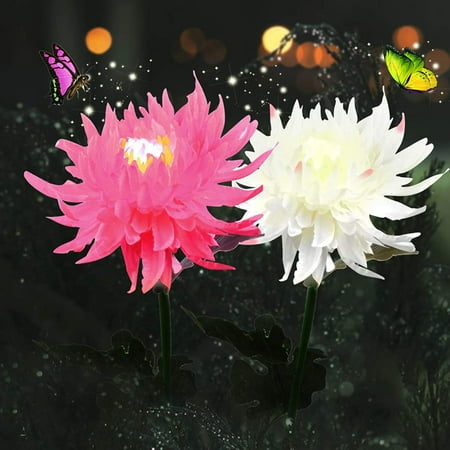 Solar Flowers Garden Lights Outdoor Large Chrysanthemum Decoration for Yard Patio 2pack (White + Pink)