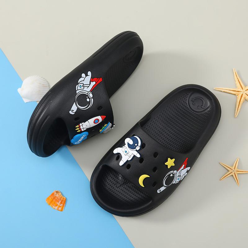 Удобные детские домашние тапочки из ЭВА, забавные мультяшные стили, нескользящая мягкая подошва, для детей Black Astronaut,40-41