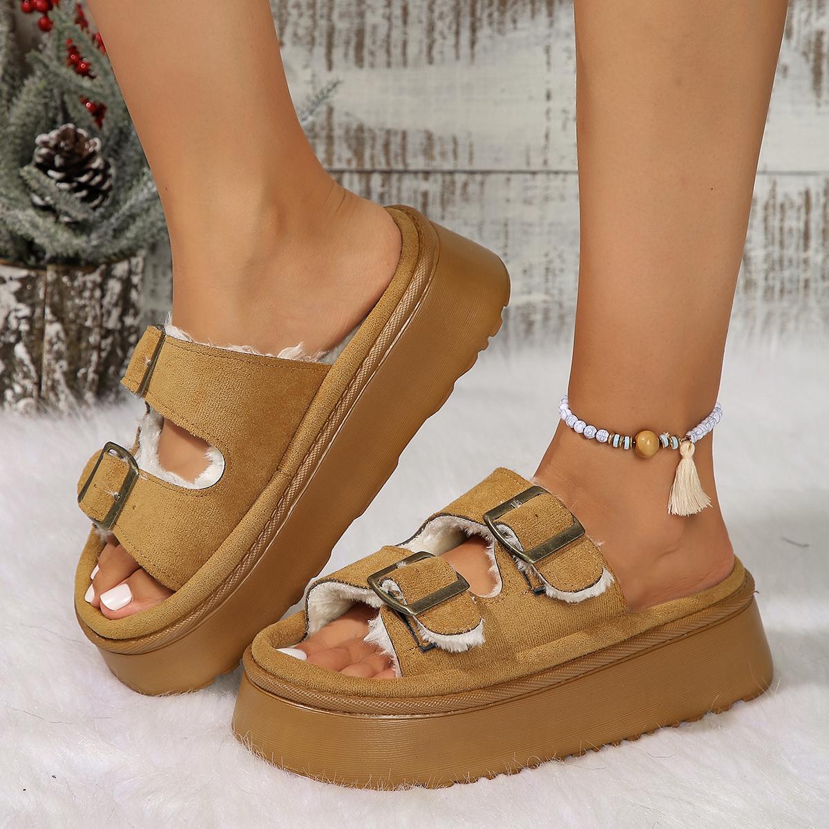 Удобные мягкие меховые тапочки женские зимние плюшевые с ремешком-пряжкой, дизайн сандалий, слипоны на платформе, пушистые шлепанцы, женская обувь для дома на толстой подошве 40-41 шоколадный