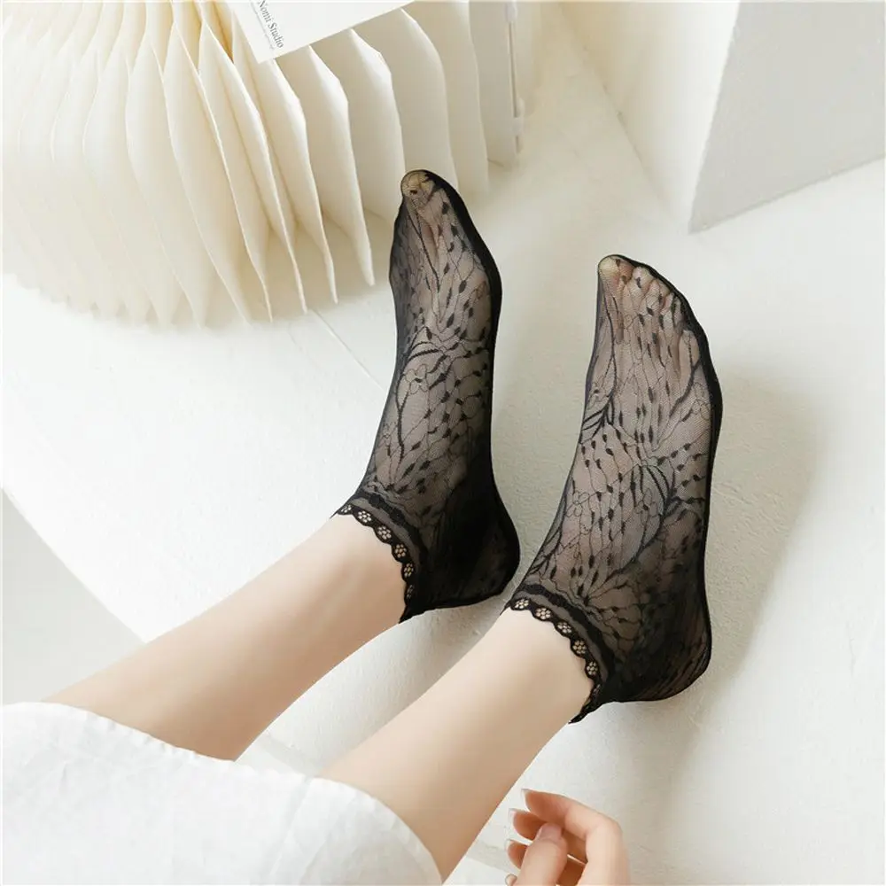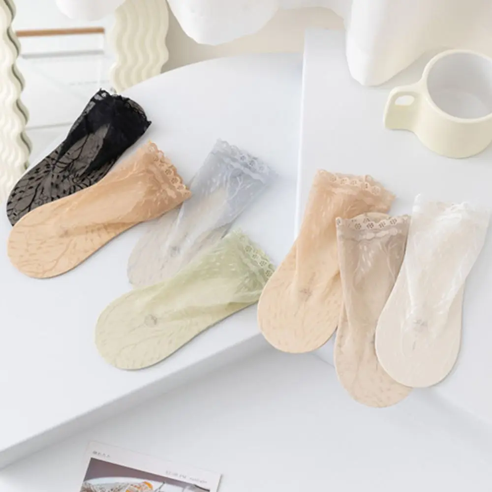 Удобные нейлоновые ультратонкие чулочно-носочные изделия с принтом листьев Нескользящие эластичные женские носки прозрачные носки кружев...