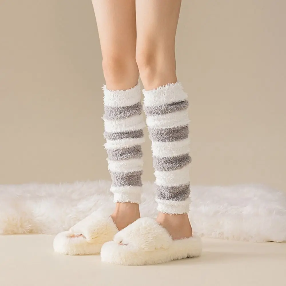 Удобные утолщенные теплые длинные носки-трубочки в полоску, простые напольные плюшевые чулки, чулочно-носочные изделия, гетры, коралловые флисовые чулки для девочек
