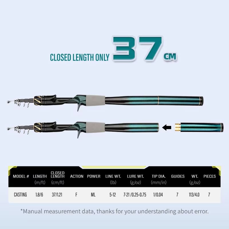 Удочка Портативная Короткая Телескопическая Удочка из Углеволокна 1.8 М / 2.1 М Телескопическая Спиннинговая Удочка Углеродная Сверхлегкая Может быть Удлинена для Дальнего Заброса Casting 1.8m зелёный