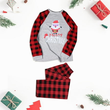 ERTUTUYI Matching Family Pajamas Sets Christmas Plaid Printed Holiday Sleepwear Long Sleeve Tee And Bottom Loungewear (Mom) Gray L