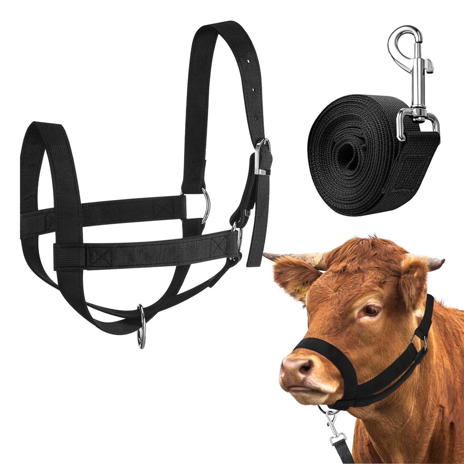 Уздечка для быка из нейлона для коровы, недоуздок для теленка, профессиональный механизм управления на открытом воздухе, как корона, так и нос с S