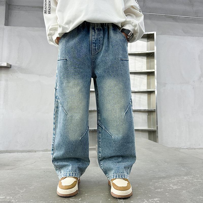 Узкие джинсы прямого кроя для мальчиков, уличный стиль 2025, новые джинсы для детей среднего и старшего возраста, красивые уличные прямые широкие штанины 120 синий
