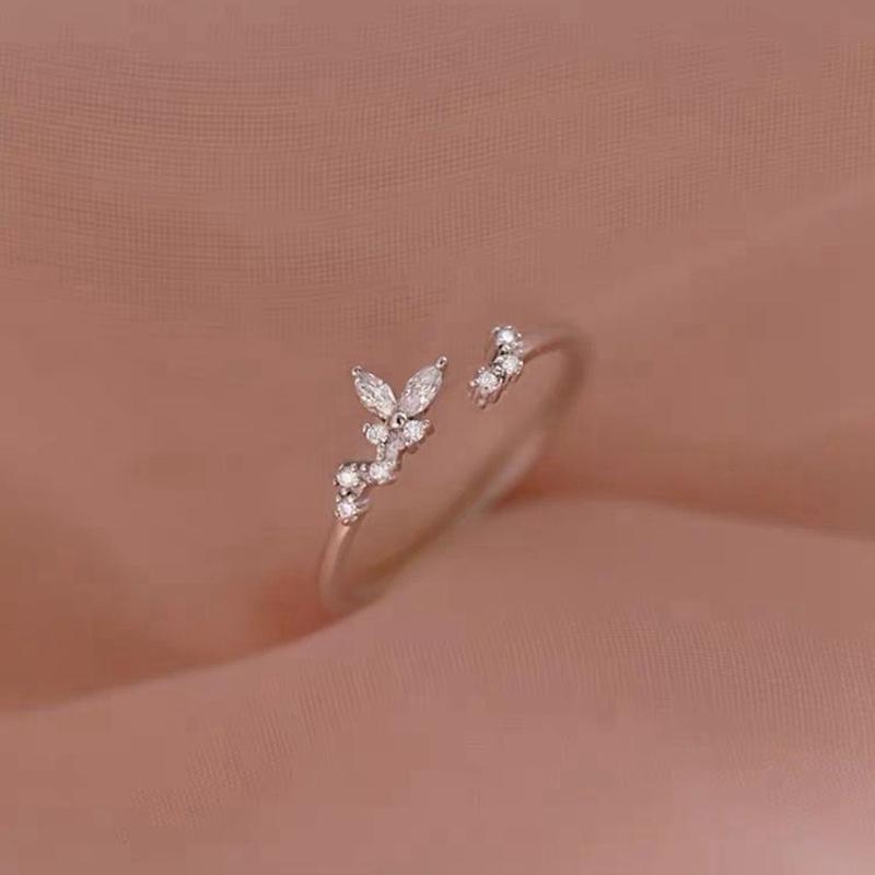 Узкие кольца с кубическим цирконием в виде бабочки из стерлингового серебра 925 пробы, регулируемые открытые кольца для женщин, роскошные изящные ювелирные изделия, подарок на палец Resizable серебряный