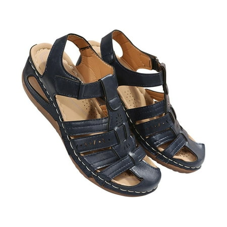Summer into Savings! Kukoosong Wedge Sandals Summer Shoes Wedge Heel Retro Hollow Out Casual Sandals Women Blue 38