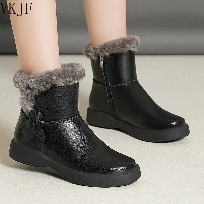boots winter kids shoes pure color waterproof clear ankle furry pu leather snow nonslip boys girls short f08222 2209132285475, Black;grey