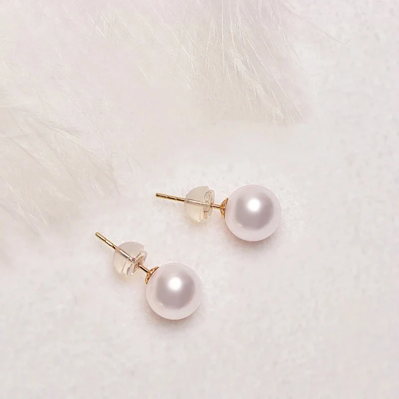 NYMPH Real 18K Gold Natural Freshwater Pearl Stud Earrings Pure AU750 Gold Earring Pins for Women Fine Jewelry Gift E035