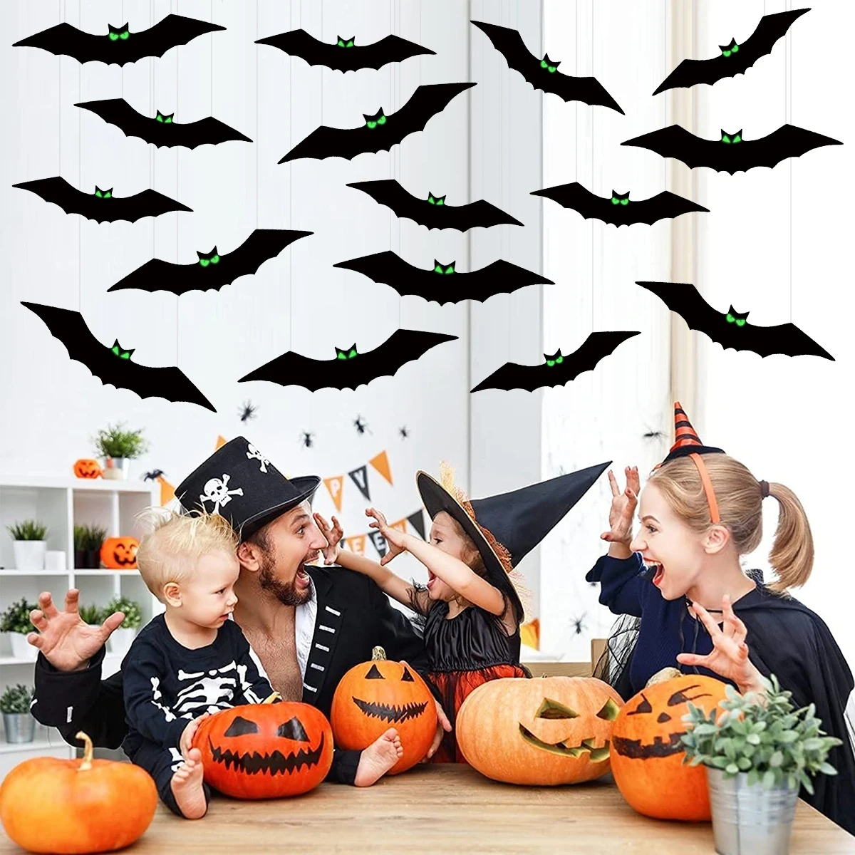 Украшение для Хэллоуина, летучие мыши, водонепроницаемая страшная подвесная летучая мышь, люминесцентная Черная Летучая мышь с флуоресцен...