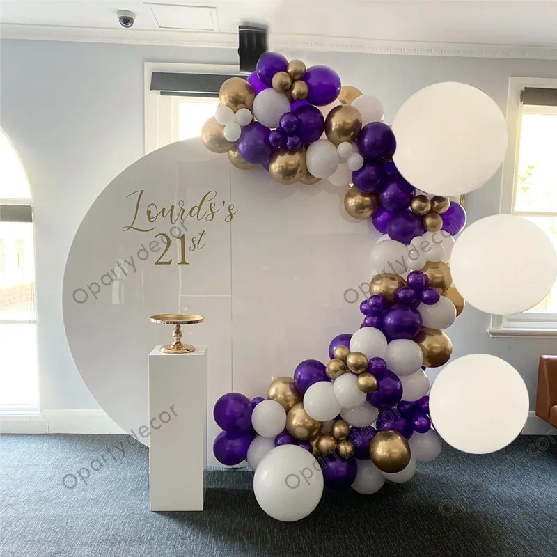 Украшение для вечеринки в честь Дня Рождения для взрослых и детей, белый воздушный шар, гирлянда, темно-фиолетовые шары, хромированные метал...
