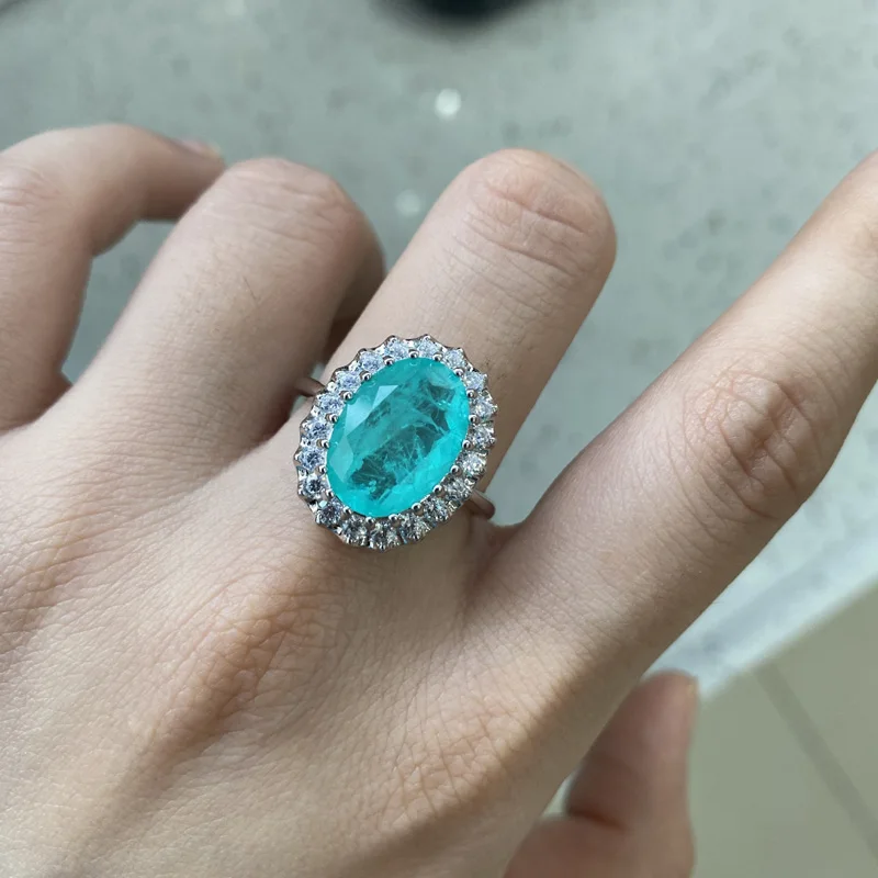 Knobspin 100% 925 Sterling Silver Dove Egg Shape Create Tourmaline Wreath with High-Carbon Diamonds For Women Rings Fine Jewelry