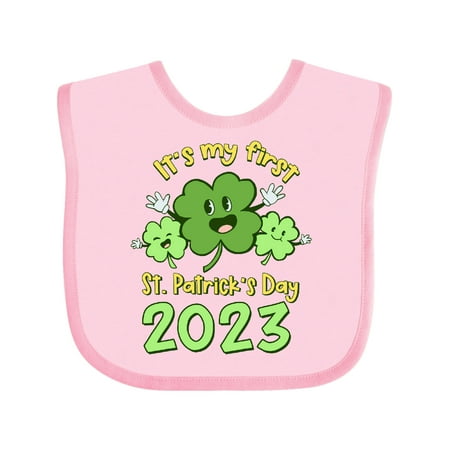 Inktastic It s My First St. Patrick s Day 2023 Cute Smiling Clovers Gift Baby Boy or Baby Girl Bib