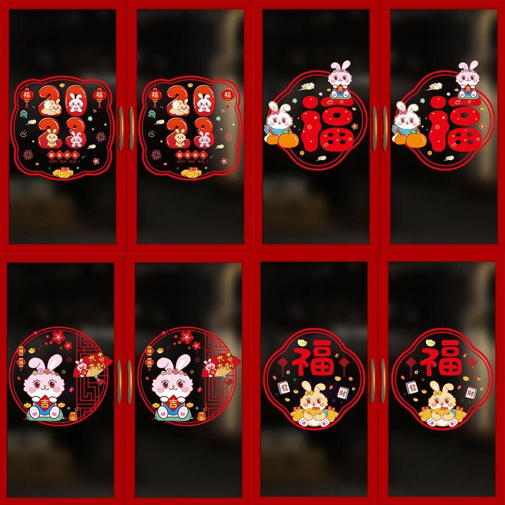 Украшения Весенний фестиваль Зодиак Кролик Наклейки на окна Праздничные атрибуты Наклейки на двери Наклейки на удачу 4