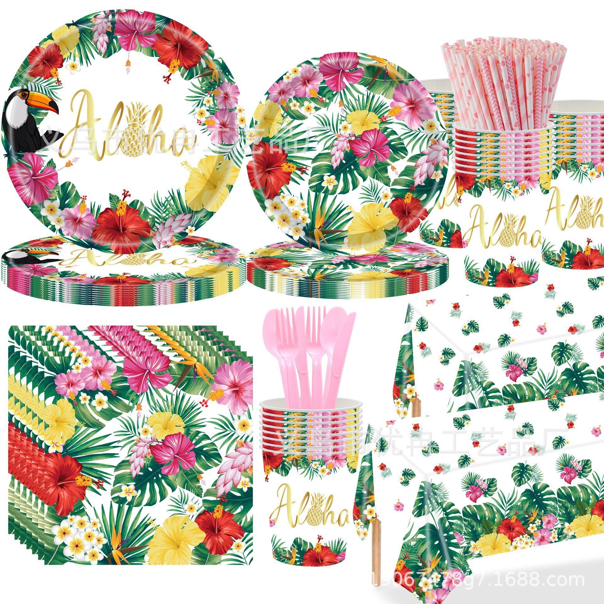 Украшения для вечеринки в стиле гавайского луау, гавайская тропическая вечеринка, столовые приборы, тукан, золотые тарелки с цветами алоха, летние принадлежности для дня рождения на Гавайях