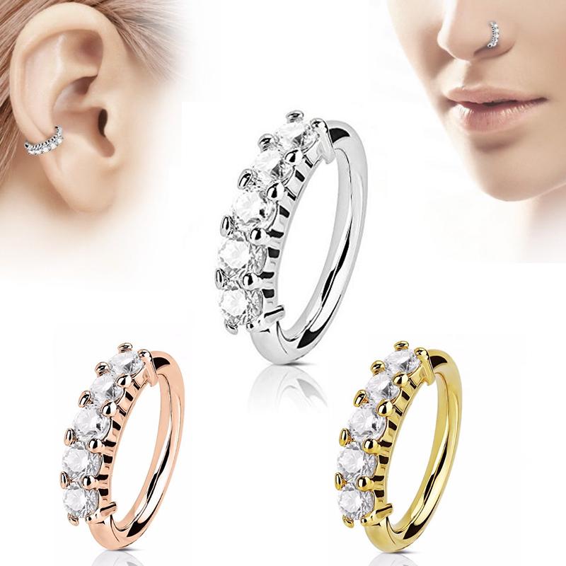 Украшения для тела с кристаллами, кольцо для носа, хрящ, мода, 1 шт., новая серьга, блестящая спираль из нержавеющей стали, ручная работа