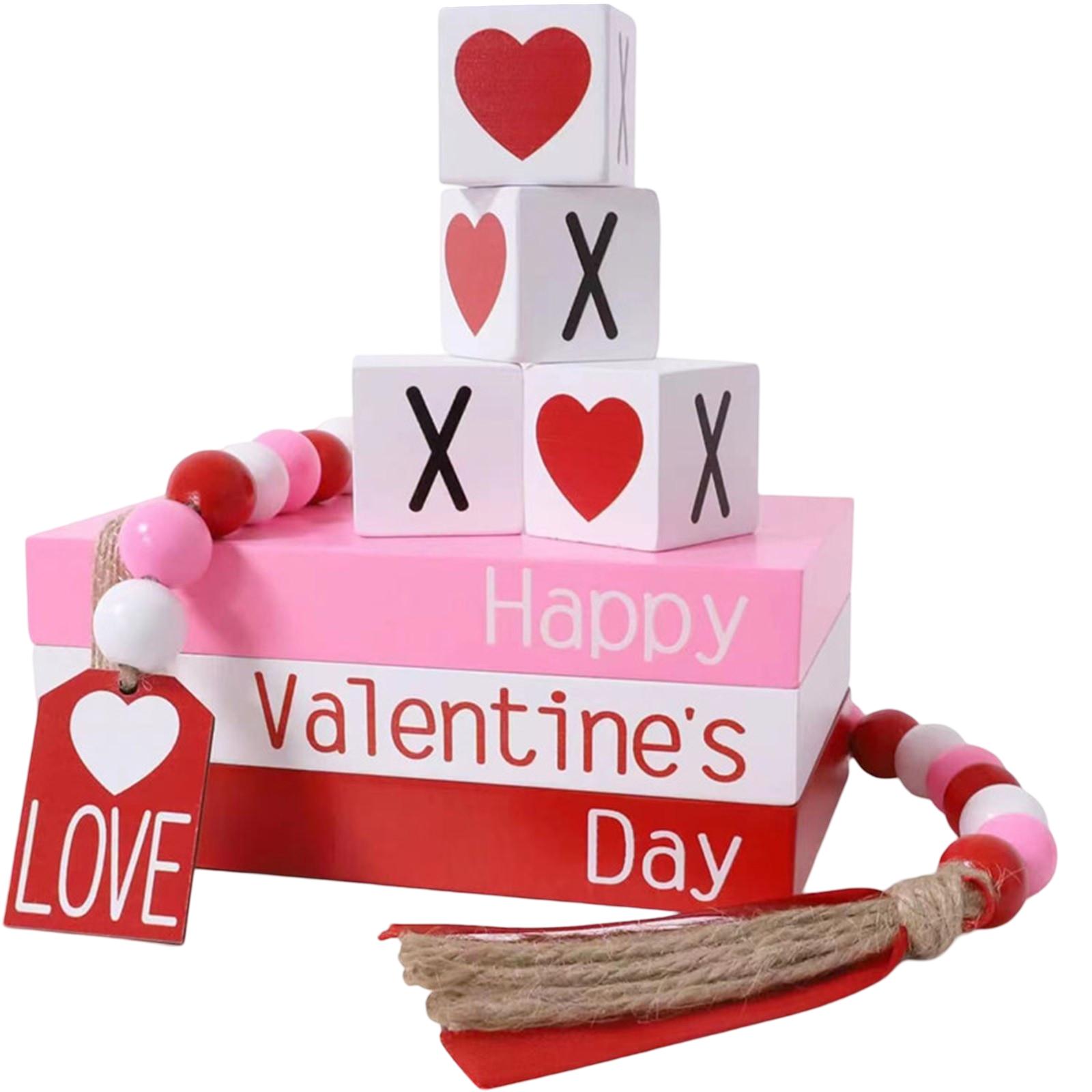 Украшения ко Дню святого Валентина Сложенные стопкой имитации книг Слоистый поднос Деревянные поделки Игральные кости Деревянное украшение One Size