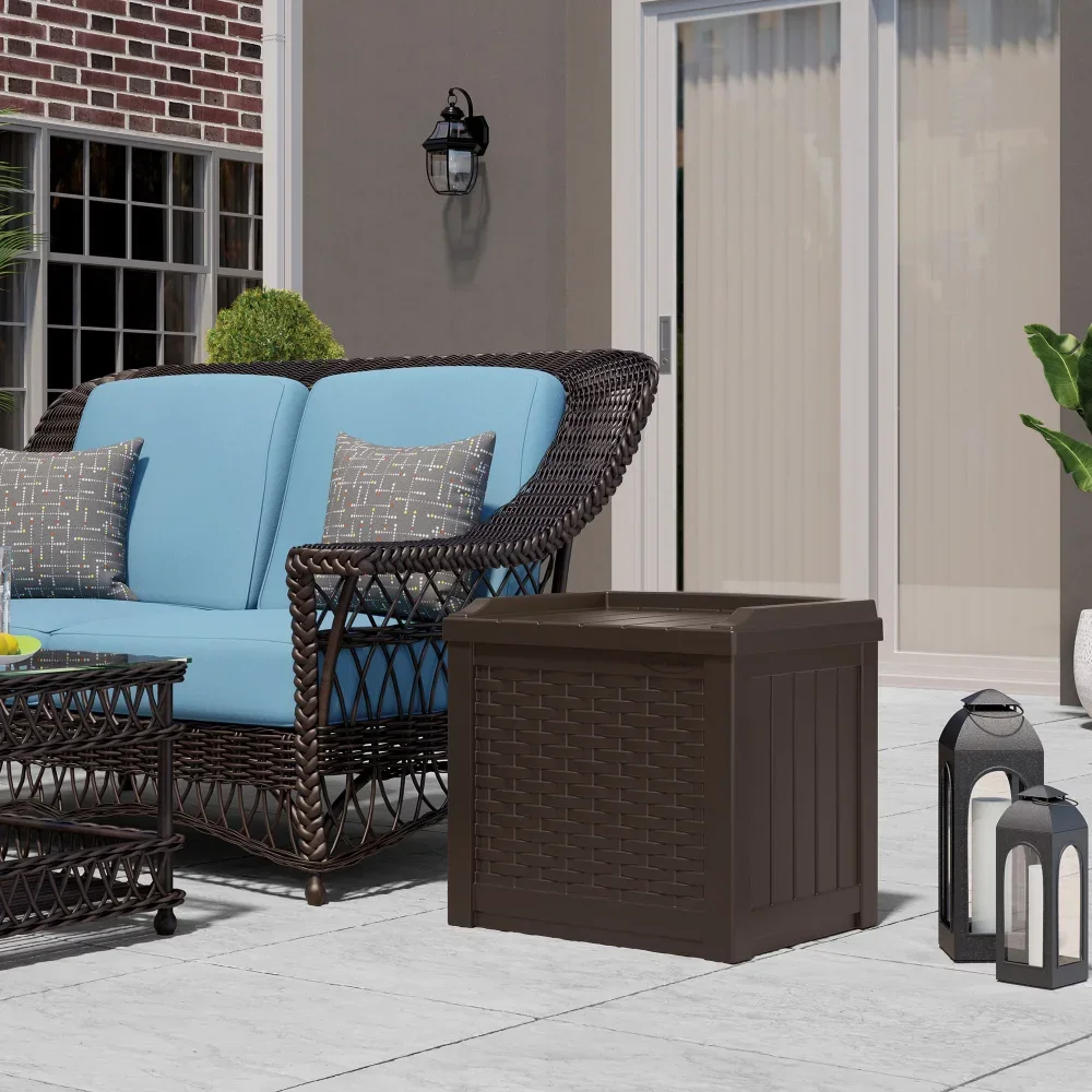 Уличная плетеная палубка из смолы и 22 галлона, Java коричневая коробка для хранения, домашняя организация и хранение