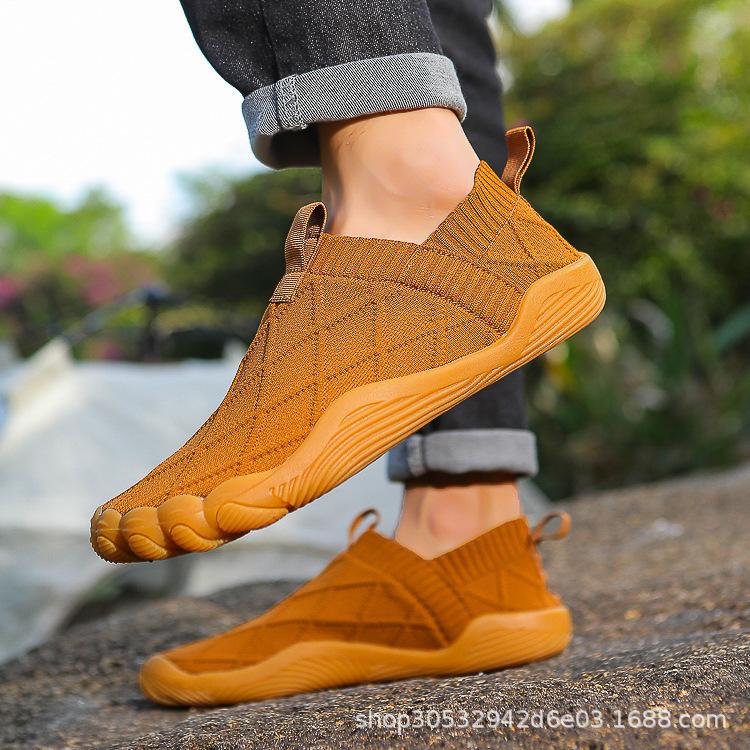 Уличная пятипалая спортивная обувь для отдыха, обувь с широким носком, эластичный верх из летучего трикотажа, нескользящая и износостойкая резиновая подошва 46 светло-коричневого