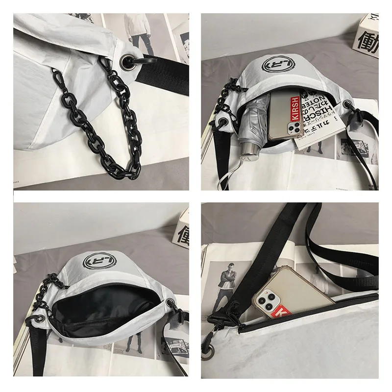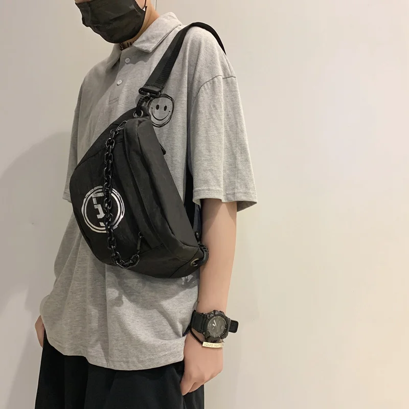 Уличная трендовая сумка через плечо, забавная нейлоновая поясная сумочка унисекс для телефона, Повседневная сумка на пояс с цепочкой