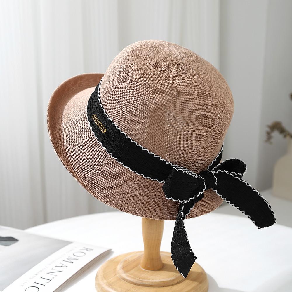 Уличная шляпа-котелок 2025 года с небольшим ароматом для детей, летняя модная соломенная шляпа с бантом, пляжная шляпа для отдыха на море M(56-58cm)
