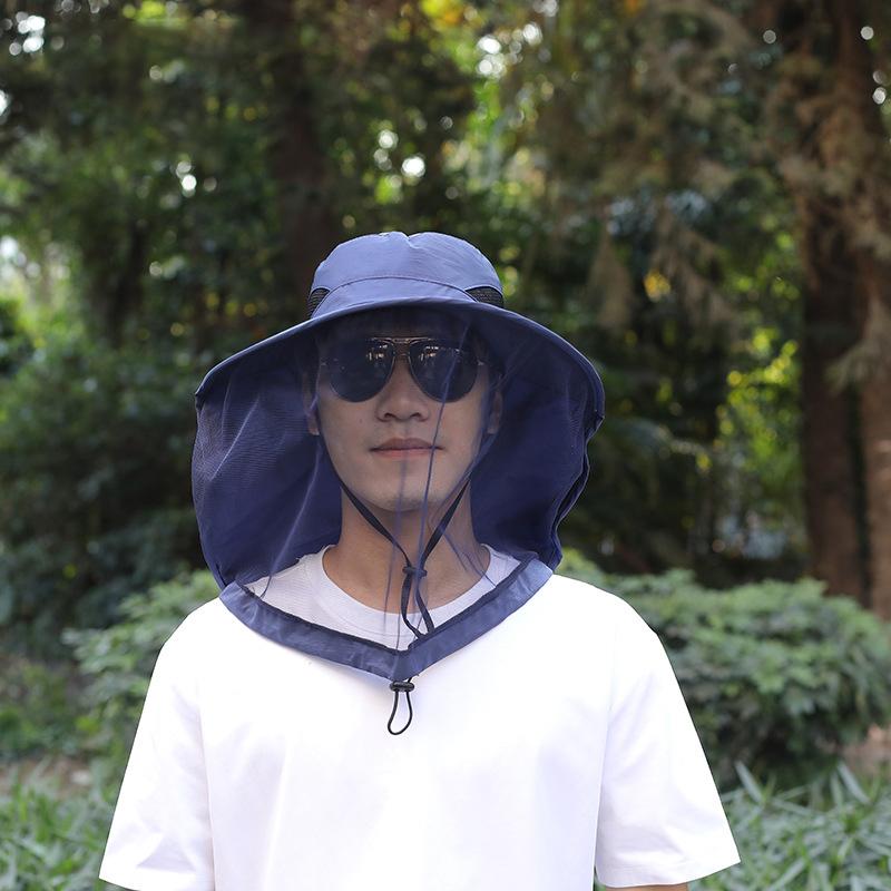 Уличная шляпа рыбака с широкими полями, шляпа-ведро, шляпа от комаров с сеткой, защита от насекомых и пчел, мужская солнцезащитная рыболовная кепка синий