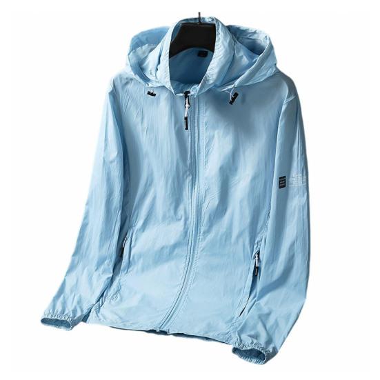 Уличное солнцезащитное пальто с капюшоном и молнией, однотонное пальто с планкой, длинное цветное покрытие на 360 градусов, ледяной шелк, анти-УФ-защита, верхняя одежда 3XL синий