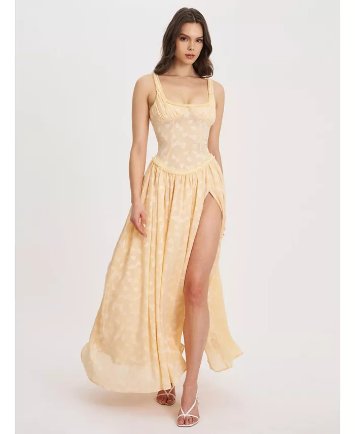 Женское платье макси Ulissa Orange с квадратным вырезом и высоким разрезом из жаккарда Miss Circle, оранжевый