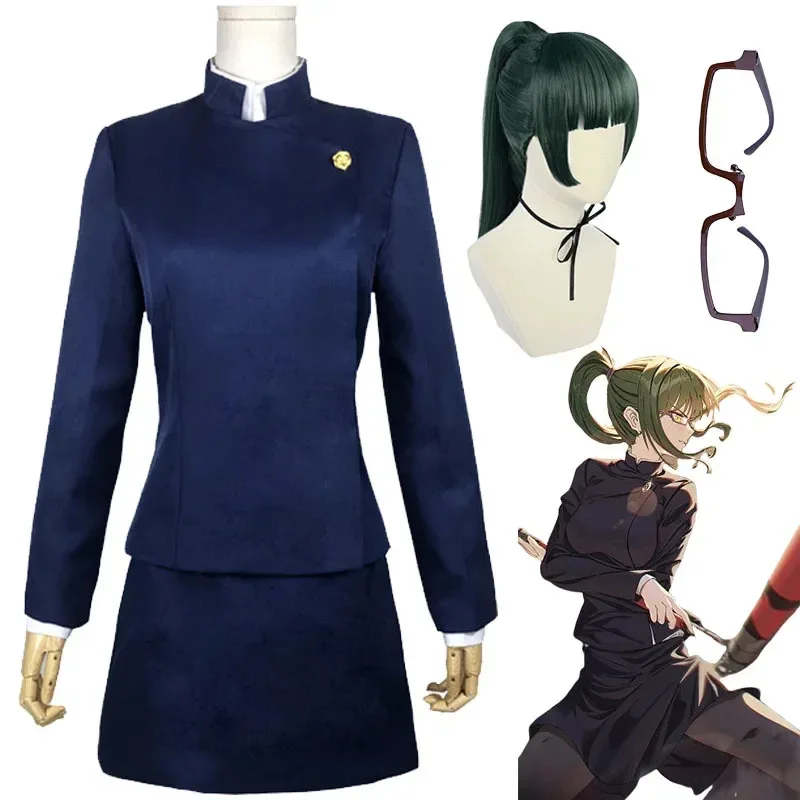 Anime Jujutsu Kaisen Zenin Maki Cosplay Costume Uniform Tops Skirt Eyeglass Frame Wig Halloween Carnival Party Costume for Women