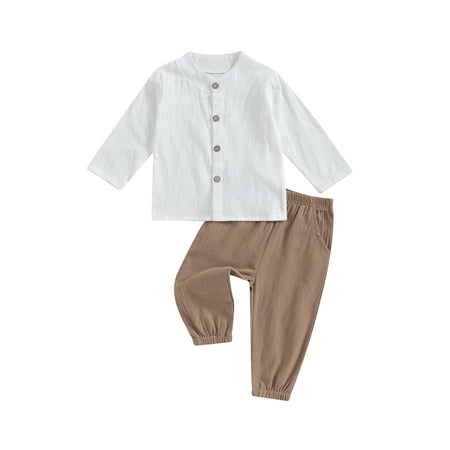 GXFC Baby Boys Fall Tracksuit Outfits Set Clothes 6M 1T 2T 3T Toddler Boys Long Sleeve Button Shirt and Drawstring Sweatpants 2 Piece Casual Autumn Clothing for Kids Boys
