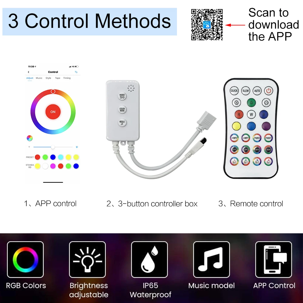 Умная Светодиодная лента с Wi-Fi, RGB, RGBW, пульт дистанционного управления, 12 В, 24 В постоянного тока, диммер, приложение Android, IOS, ИК-управление для...