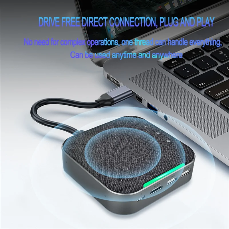 Умная док-станция для конференций, громкая связь, видеоконференция, всенаправленный микрофонный концентратор для ПК, портативного компьютера