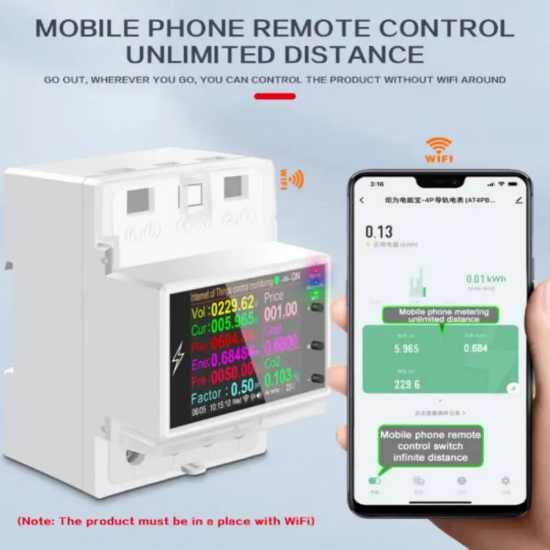 Умный выключатель AT4PW Tuya с Wi-Fi, цифровой прибор для измерения частоты, силы тока, силы тока, ампер, кВтч, на Din-рейке, с дистанционным управлени...