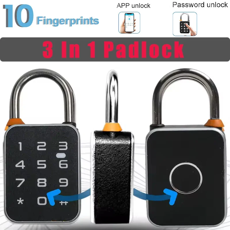 Умный замок Tuya APP + отпечаток пальца + пароль 3 в 1, электрический биометрический замок, IP65, мини-умные замки без ключа, противоугонные навесные замки