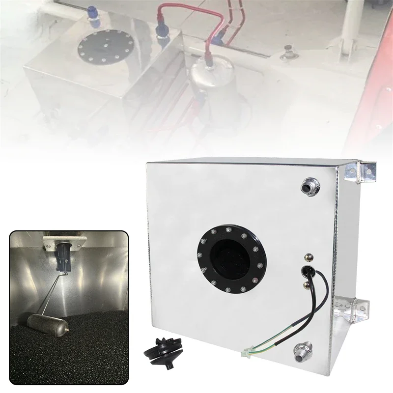 Универсальная алюминиевая гоночная дрифтерная полоса с серебряным покрытием на 10 галлонов, топливный бак + Отправитель уровня на 40 литров, полированная улица