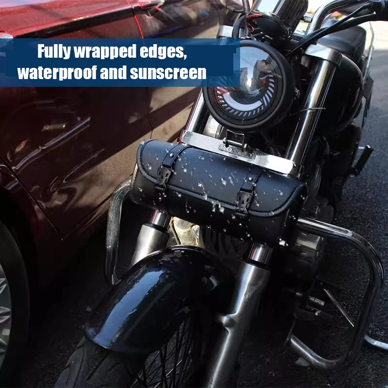 Универсальная боковая сумка для хранения мотоцикла | Водонепроницаемая кожаная седельная сумка (передняя вилка/руль) | Оснащен быстросъемными ремнями.