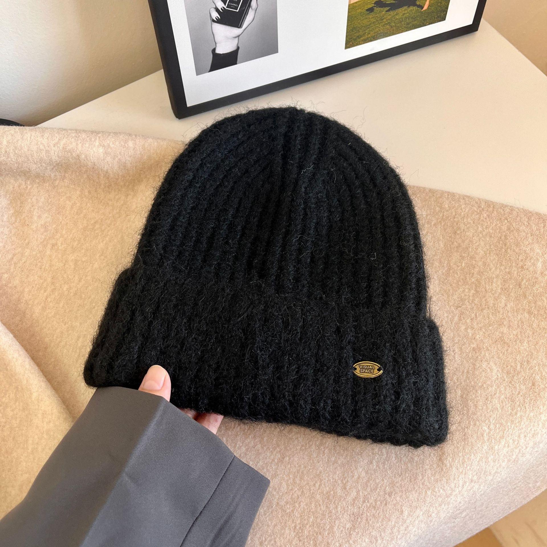 Универсальная плюшевая вязаная шапка женская осенне-зимняя повседневная универсальная большая головка гофрированная защита для ушей пара простая холодная шапка прилив M(56-58cm)