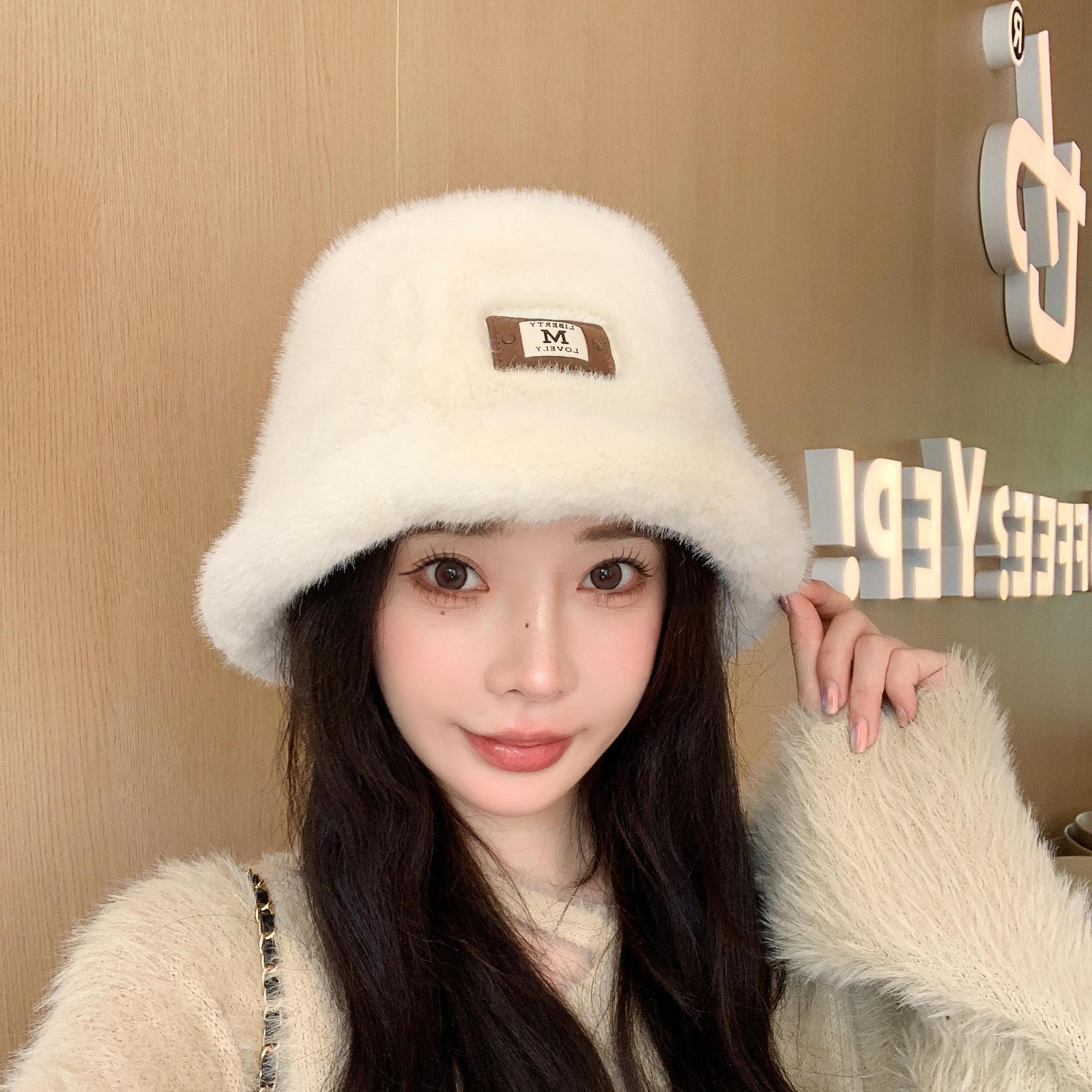 Универсальная пушистая шляпа-рыбак для женщин, модная и элегантная, теплая и защищающая от холода, подчеркивающая лицо, с маленькой тканевой этикеткой, шляпа-ведро M(56-58cm)