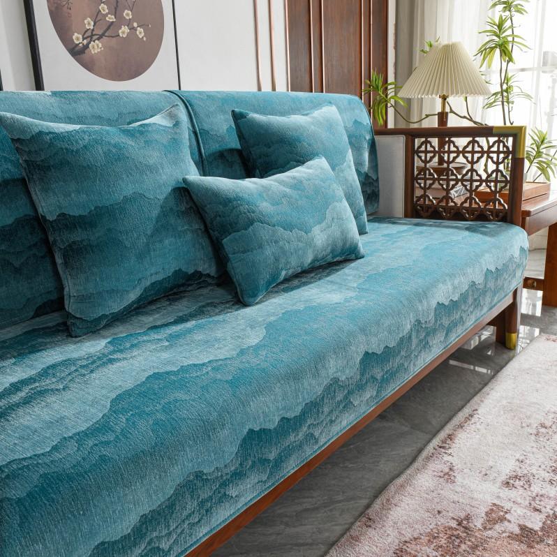 Универсальная синельная подушка Four Seasons с трехмерным узором Циншань, китайская простая нескользящая подушка для сиденья дивана, полотенце для дивана 70*70cm