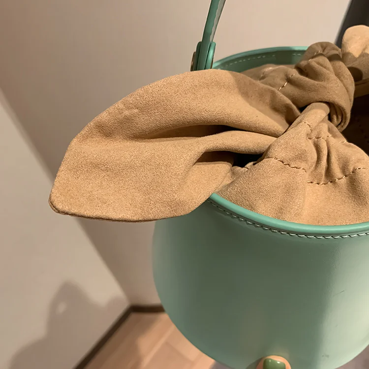 Универсальная сумка-мешок с бантом и ушками кролика, новая модная текстурированная кожаная Высококачественная женская сумка через плечо, ж...