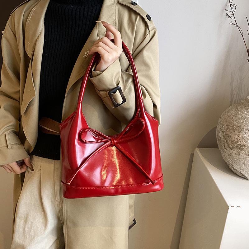 Универсальная сумка-тоут из вощеной кожи 2024 года: Женская сумка-мессенджер с большим бантом на подмышку для поездок на работу и отдыха на осень/зиму. Style 2