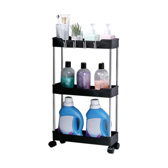 Универсальная тележка на колесиках для хранения вещей Тележка с блокируемыми колесами Большая вместимость Многослойная конструкция Многофункциональные полки для хранения Органайзер на колесиках 3-Layers