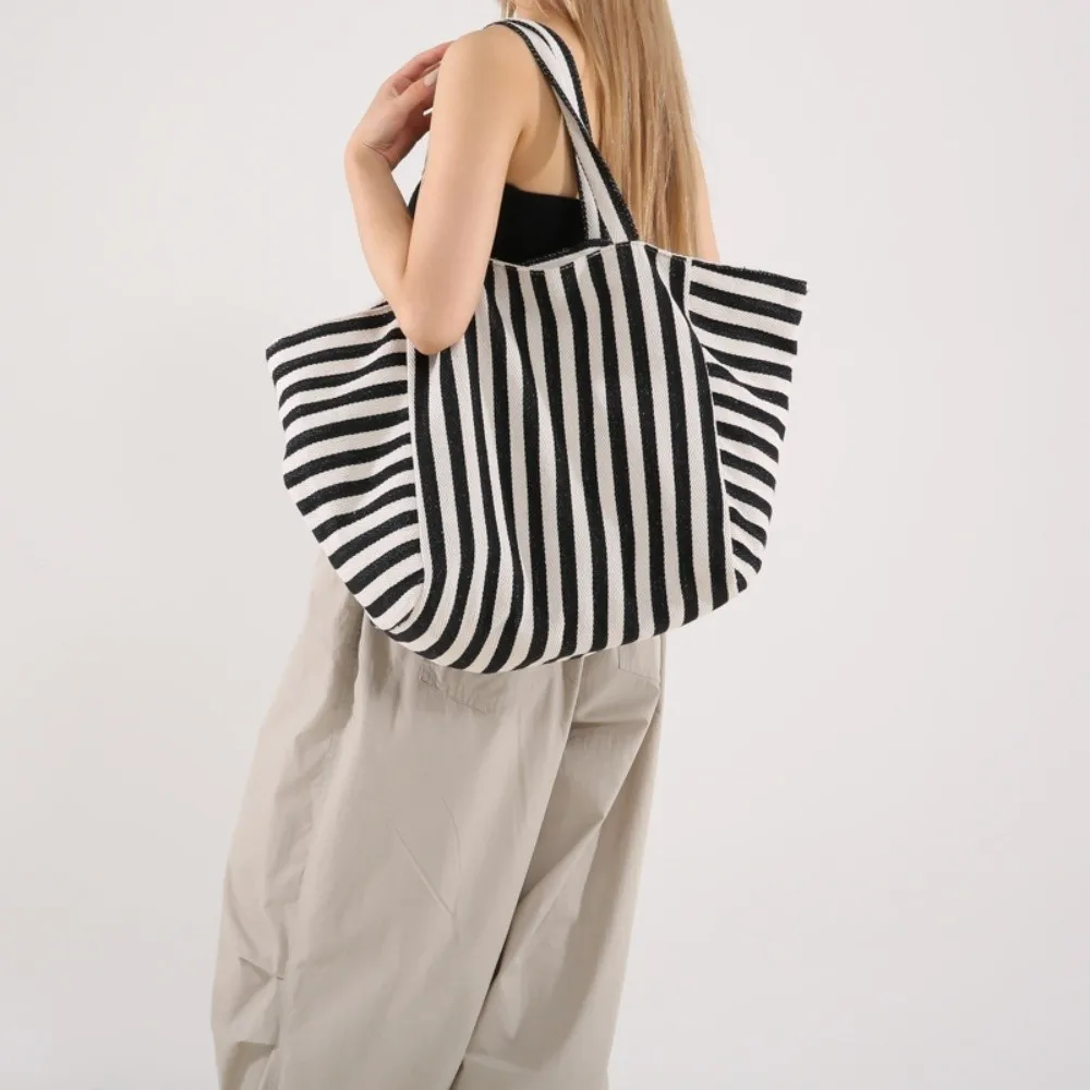 Универсальная холщовая сумка в полоску для подмышек, сумка на плечо, черная/синяя/красная тканевая сумка на плечо, сумка для покупок, большая вместительная сумка для девочек