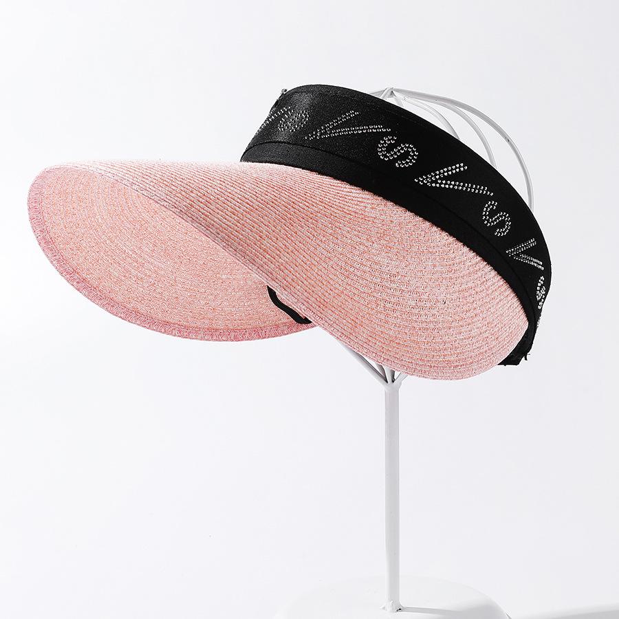 Универсальная шляпа Соломенная плетеная Блестящие стразы Женские шляпы Кепки Солнцезащитная розовый