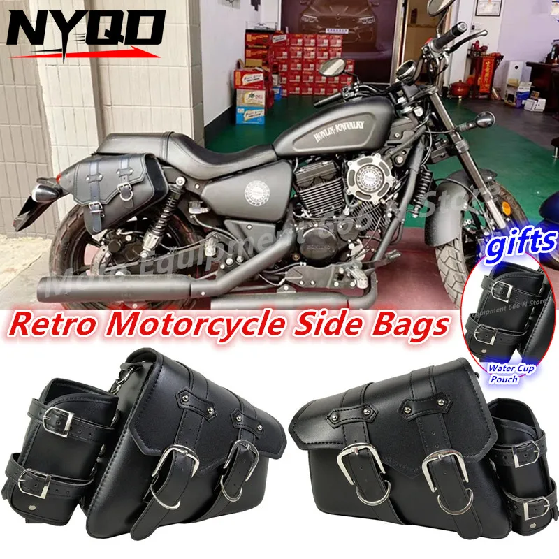 Универсальные мотоциклетные боковые сумки в стиле ретро с карманом для чашки для воды, кожаные прочные треугольные подвесные сумки для мотоциклов