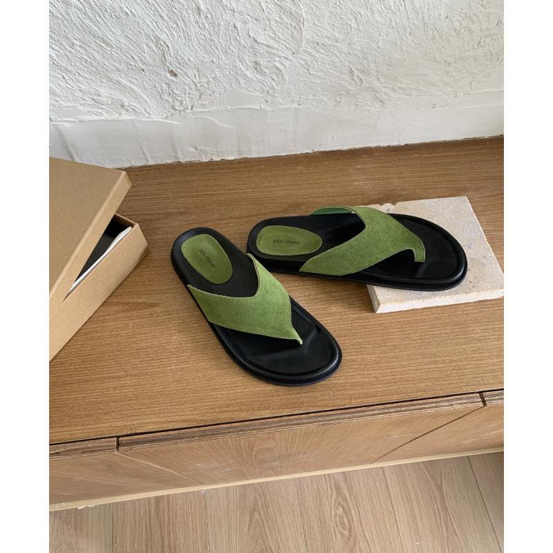 Универсальные и не уставшие ноги на плоской подошве, шлепанцы с перемычкой, обувь женская, летняя, новая, ретро, матовая кожа, крутые тапочки 39 зелёный