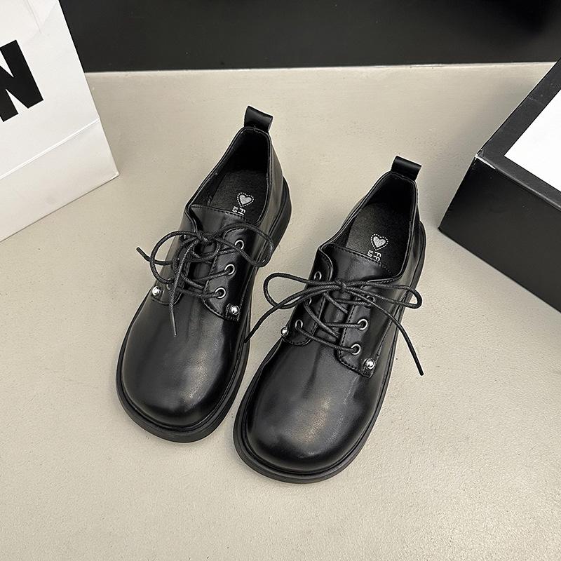 Универсальные ретро лоферы на платформе в британском стиле, маленькие кожаные туфли, женские осенне-зимние 2025, новые французские туфли на толстом каблуке 39 матовый черный